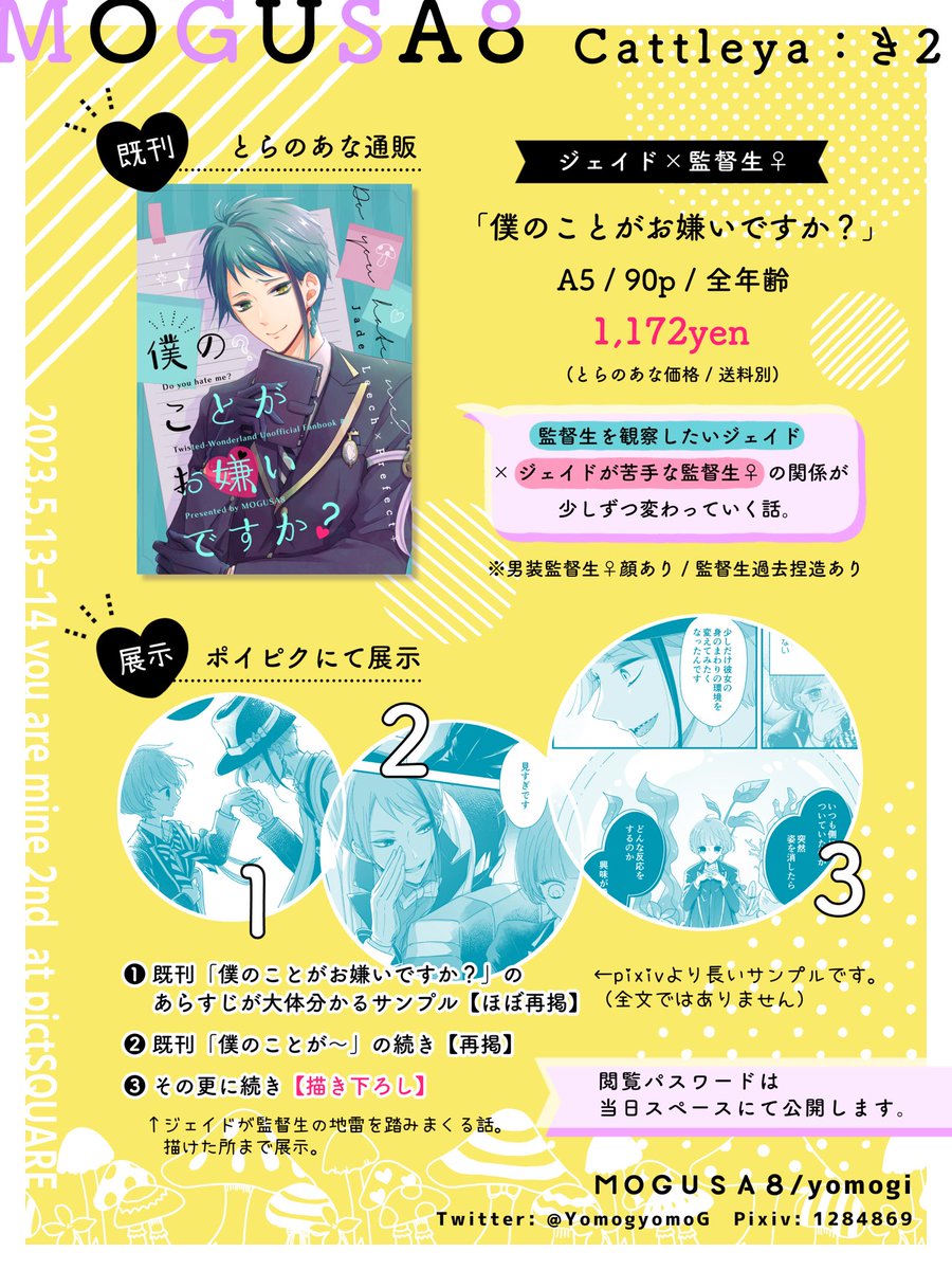 #ゆあまい2nd_お品書き 5/13〜5/14女監督生受webオンリー『ゆあまい2nd』にジェイ監♀🐬🌸で参加します。 ・既刊頒布とマンガの展示3本 ・展示の描き下ろしは長い話の導入部分となります。 ▽ツリーに既刊のサンプルを繋げます。