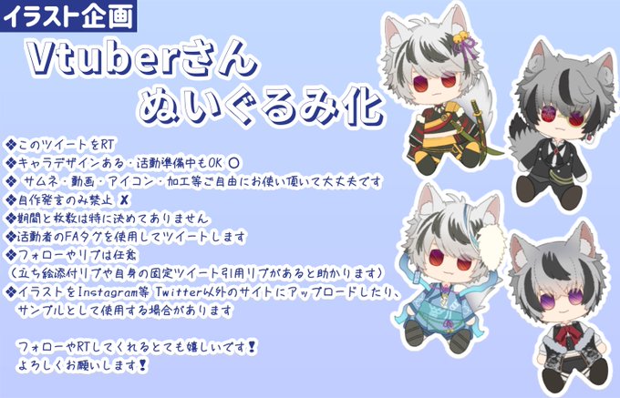 【無料ぬいぐるみ化】 ❖参加方法はRT ❖活動準備中もOK⭕ ❖ サムネ・動画・アイコン・加工等ご自由に ゆるく募集します よかったら参加してね✨ フォローやRTしてくれるとても嬉しいです❣️ よろしくお願いします❣️ #RTしたVtuberを描く #RTしたVtuberさんを描く #無償企画 #イラスト企画