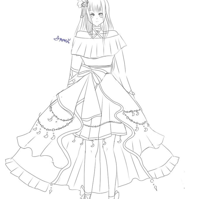 ドレスとかデザインしてみたかった どっかで線画綺麗に描き直すので塗ってくれる方いませんか(˶' ᵕ ' ˶) #イラスト #フォロバ100絶対します #線画を晒すと誰かが色を塗ってくれるかもしれない