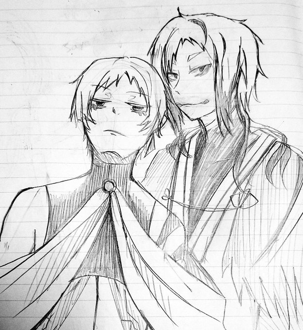 1 8 友達がキャラデザしてくれたやつを描きました。 翡翠と硝子です。 素敵なキャラをありがとう!! #オリジナルキャラ #イラスト #ウルフカット 23/02/09 01:01