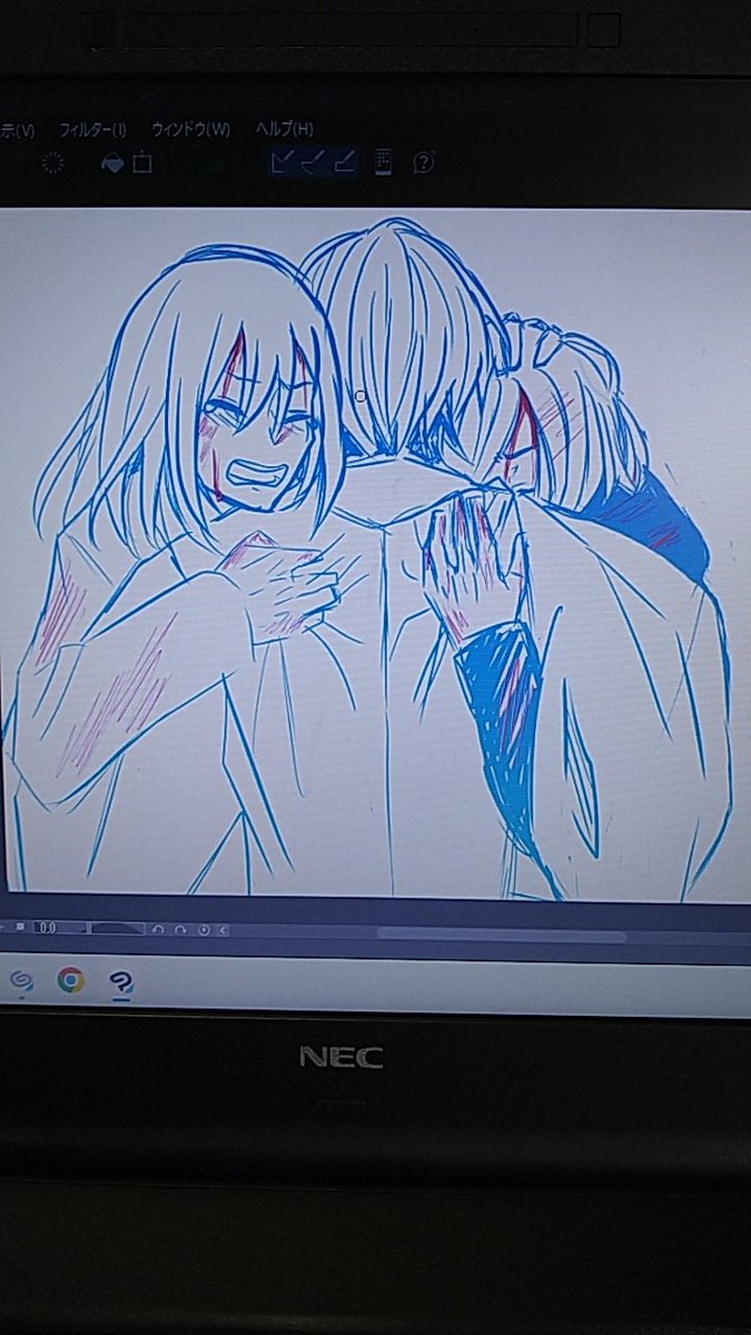 らふ→本描き。 初めて3人もいっぺんに描いた 目が痛い😣 #イラスト好きな人と繋がりたい #ラフ画 #デジタルイラスト