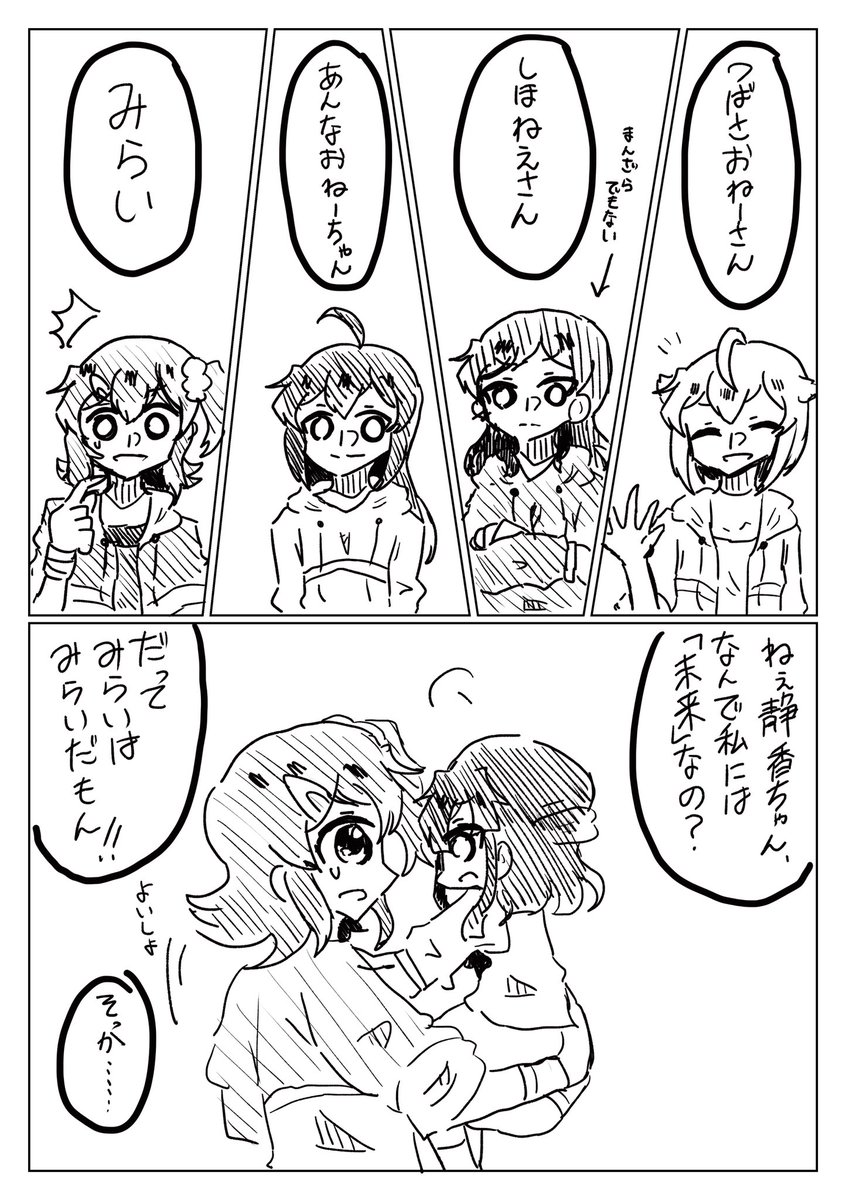 6 15 なんとなく甘え下手な未来ちゃの話になりました 未来ちゃに母性を感じる静香さんとか描いてみたいです 23/01/23 00:20