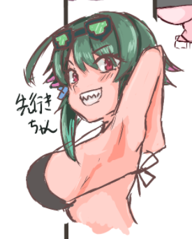 玄瀬ちゃんに(@kurosekusumasa2)描いていただいたイラストなのだ!えちかっこいい!邪眼と神話生物が君を見てる!僕とまろんちゃん( @kuriko_0929 )との圧力!僕も負けてないのだ!💦 でっぱいのとちっぱいのどっちも好きなのだ? #カスタネアート #ヨルノの生態 #Vtuberの胸が見たい