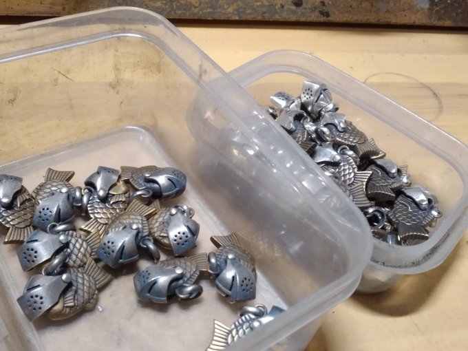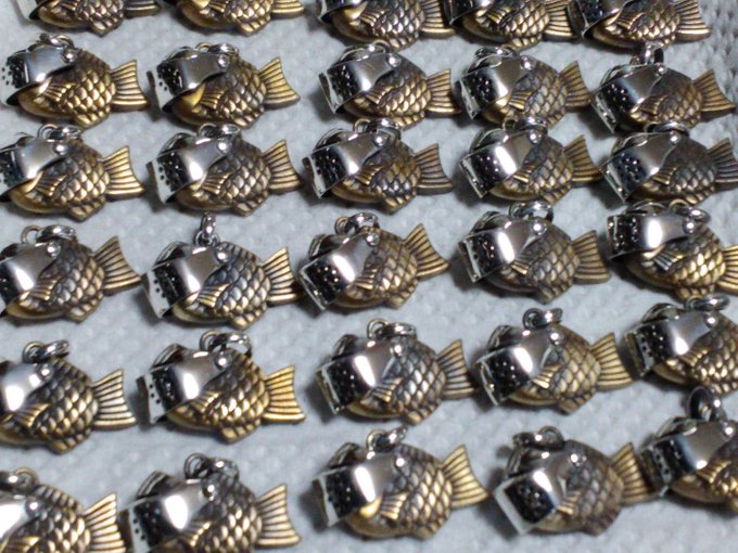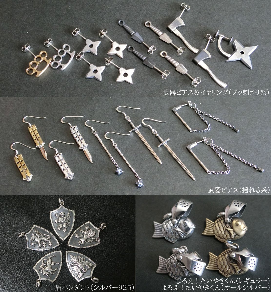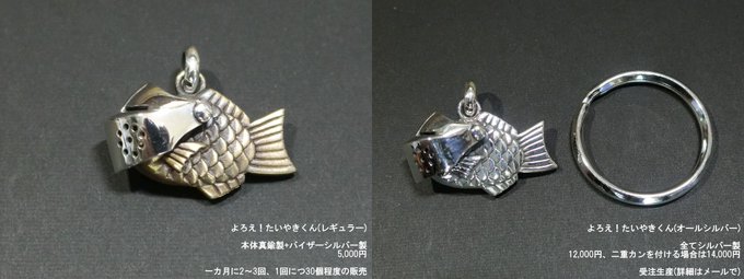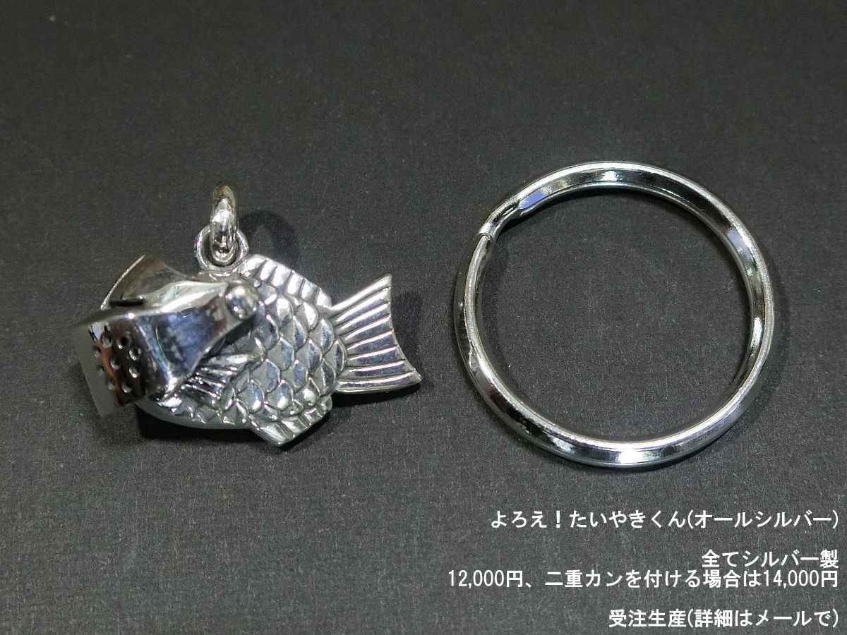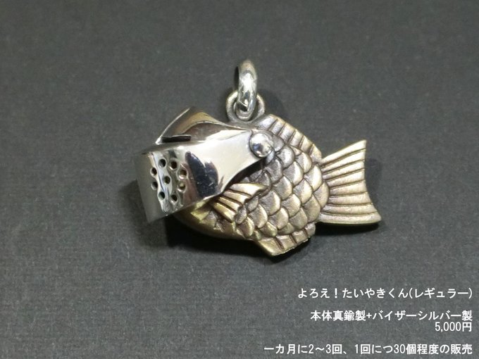 よろえ!たいやきくん。武器アクセサリー屋の葛藤が産み出した鯛焼きの様な何か。首から下げても良し、キーリングが付属するのでキーホルダーにしても良し。今回はオールシルバー版も販売します。 #デザフェス #デザフェス57 #デザフェスお品書き