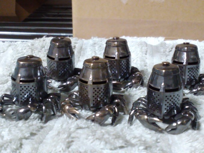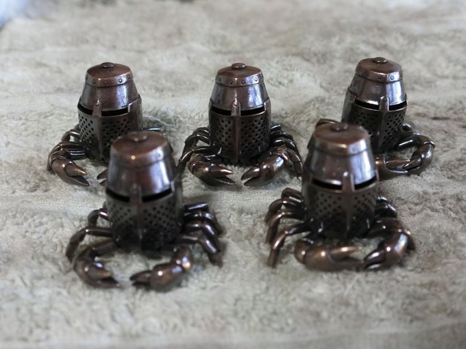 真鍮兜蟹と真鍮兜虫。何の役にも立たない置物です。すみません、今回もちょっとずつしか作ってません。お求めお方はお早めにどうぞ。お一人様各1個まででお願いします。 #デザフェス #デザフェス57 #デザフェスお品書き