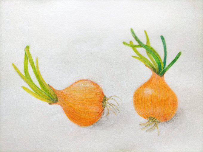 じゃがいもに続き、次はたまねぎです🧅 玉ねぎの芽は…食べられますね☺️ しかし、常温保存の野菜は忘れられがちなので、気をつけます……。 描いた絵を上手く撮れるようにもしていきたい。でもまずは、もっと上手く描けるようになるところからかな。もっと描くことに慣れたい。 #イラスト #色鉛筆 twitter.com/Yoshika04980…
