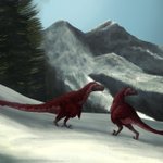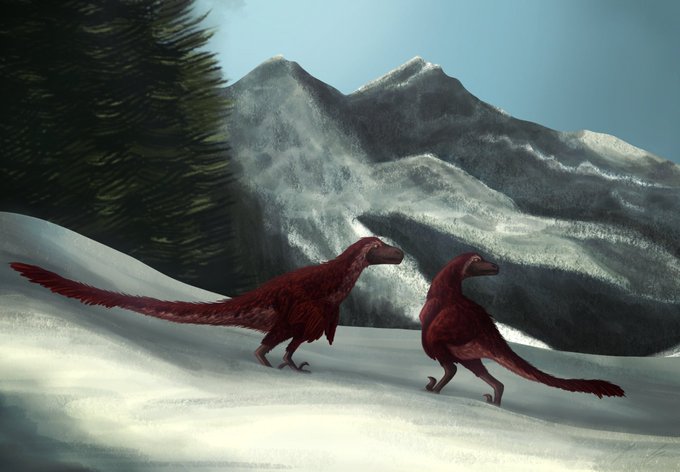 I drew the Prehistoric Planet dromaeosaurs but with the JW Dominion pyroraptor colours! I like how the red works well with the more cool tone background #art #digitalart #PrehistoricPlanet #dromaeosaur #paleoart