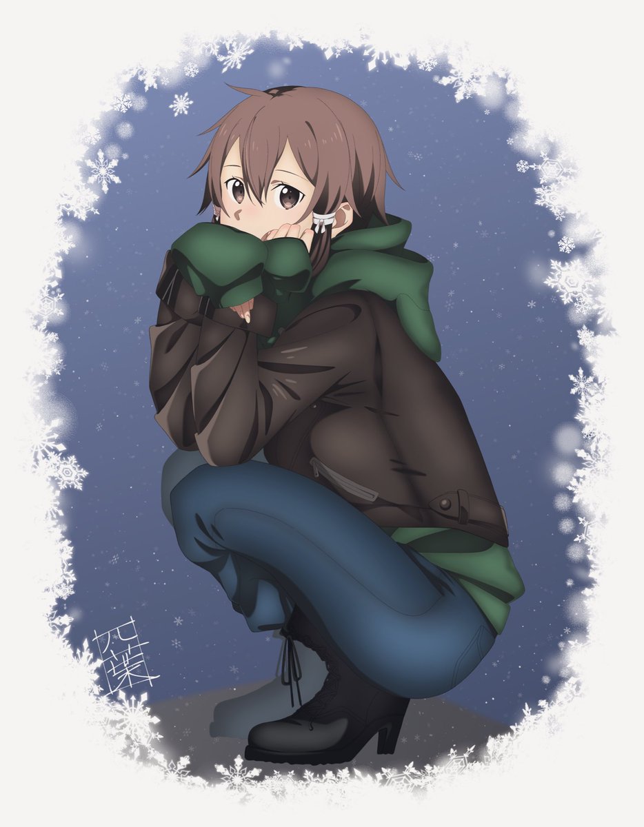 40 166 バイクに乗れる服装でスタンバる詩乃さん🏍 もう夜は凍える寒さよなぁ〜冬の女性は可愛い系はオフショルニット、綺麗系はライダースジャケットなイメージが・・・いや個人的な好みがあります👀どのシノンさんで描くかも迷ったぜ・・・・・・次はキリアスかなあ 21/12/09 15:46