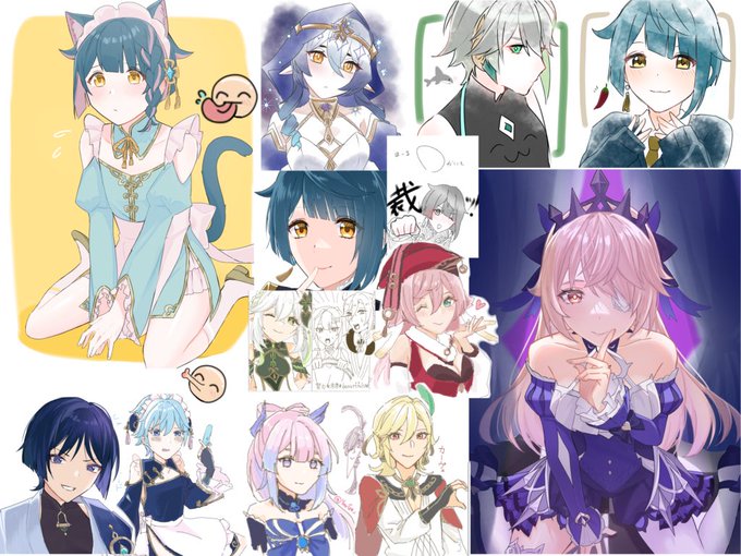#今月描いた絵を晒す #原神 #GenshinImpact いつも半年に一枚描く遅筆なのですが、相互さんたちに会って今までにないくらい絵を描きました。たくさん描けて楽しかったです♪