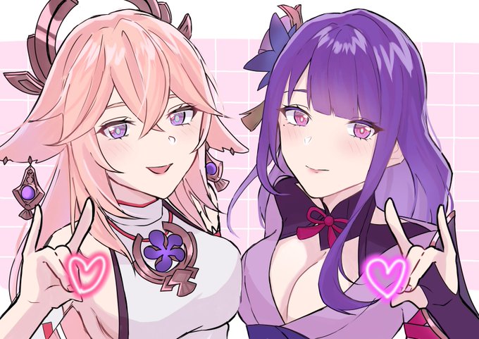 大遅刻ですがおめでとう🎊 二人のコンビ大好き💕 #雷電将軍生誕祭2023 #八重神子生誕祭2023 #GenshinImact