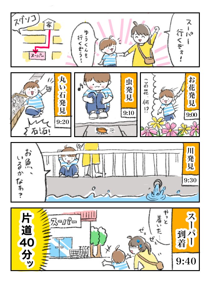 時間の感覚がバグる😇 でも、帰りたい時間になると、 帰るの渋るから、 逆にどんどん時間が過ぎるっていう… また、誤字をしてしまって 投稿し直しました。 せっかく いいねして下さった方もいたのにごめんなさいm(_ _)m #育児漫画 #育児絵日記 #漫画が読めるハッシュタグ