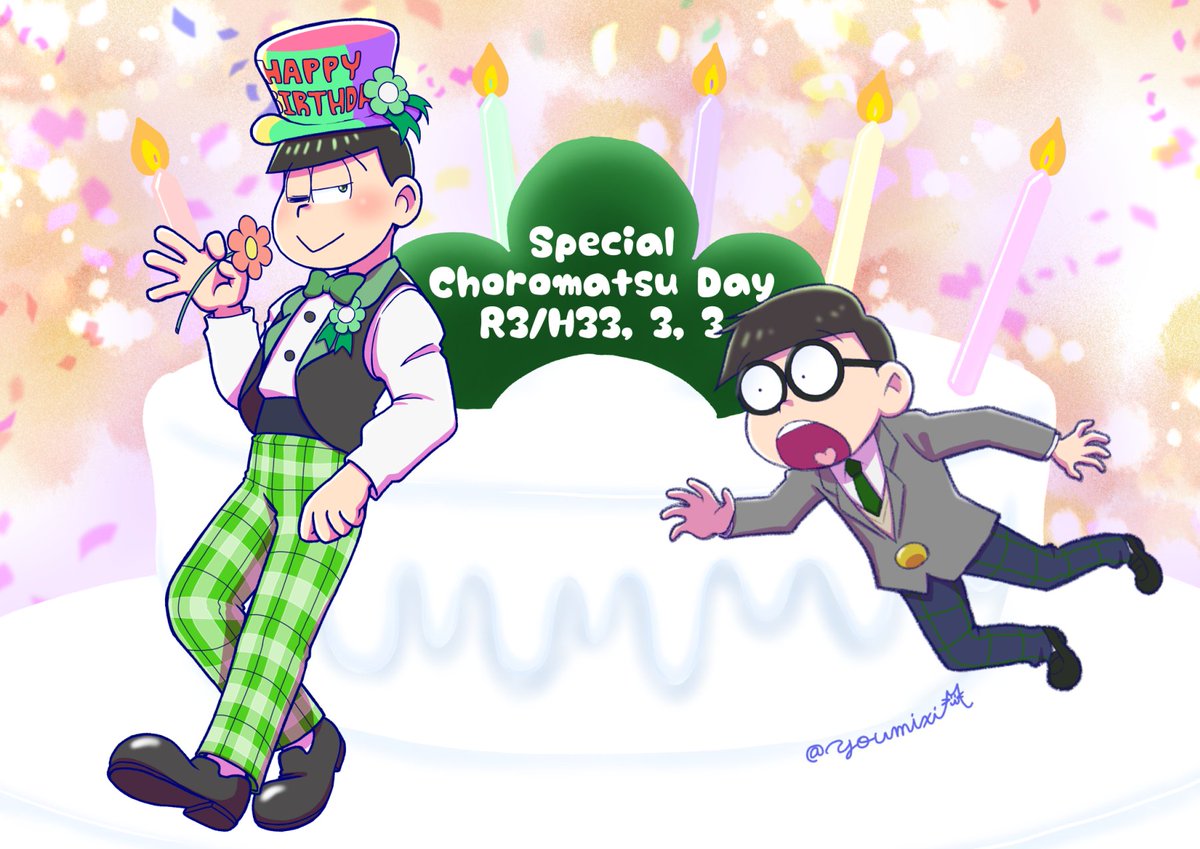 8 22 #令和3年3月3日にチョロ松記念館を再建しよう #松野チョロ松記念館開館記念 #3月3日はチョロ松の日 過去絵かき集めただけなのに間に合わなくてゴメンね〜💦 スーパーチョロ松デーおめでと〜💚 21/03/04 06:24