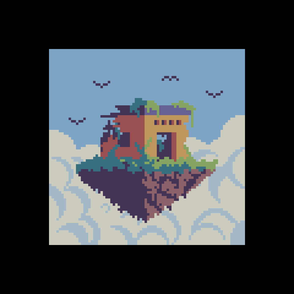Abandoned house on the sky island. #pixelart #ドット絵 #像素画