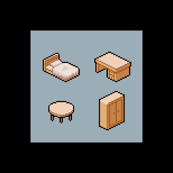 Some furniture practice and I want to paint a little bedroom with them. #pixelart #ドット絵 #像素画