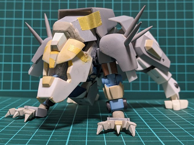 「四郎くんいまならまだシミュレーションがつかえる! モビルアニマルパワーを見せてやろう!」 やっとこさモビルアニマルの合体までこぎ着けました。 結論から言うと、αの上半身とβの下半身は外してポイしてます…。 #プラモ狂四郎