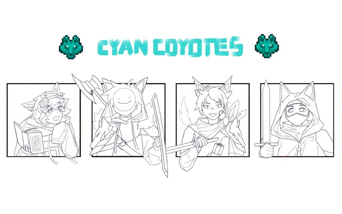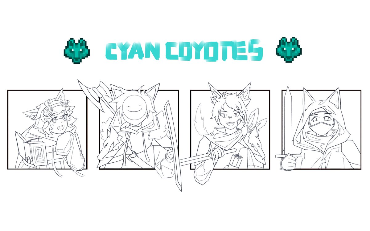 Cyan Coyotes - Dream outline (other members still in progress) hopefully can finish entire team before MCC 17 #CYANCOYOTES #dreamfanart #mccfanart #mcc17