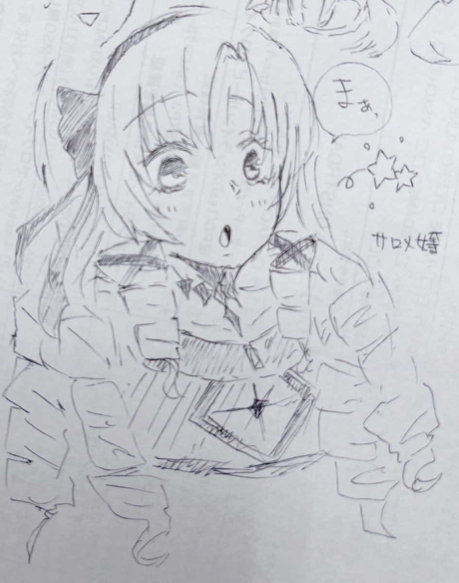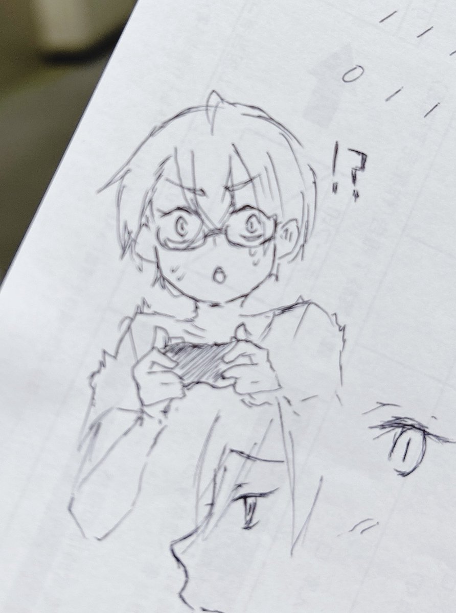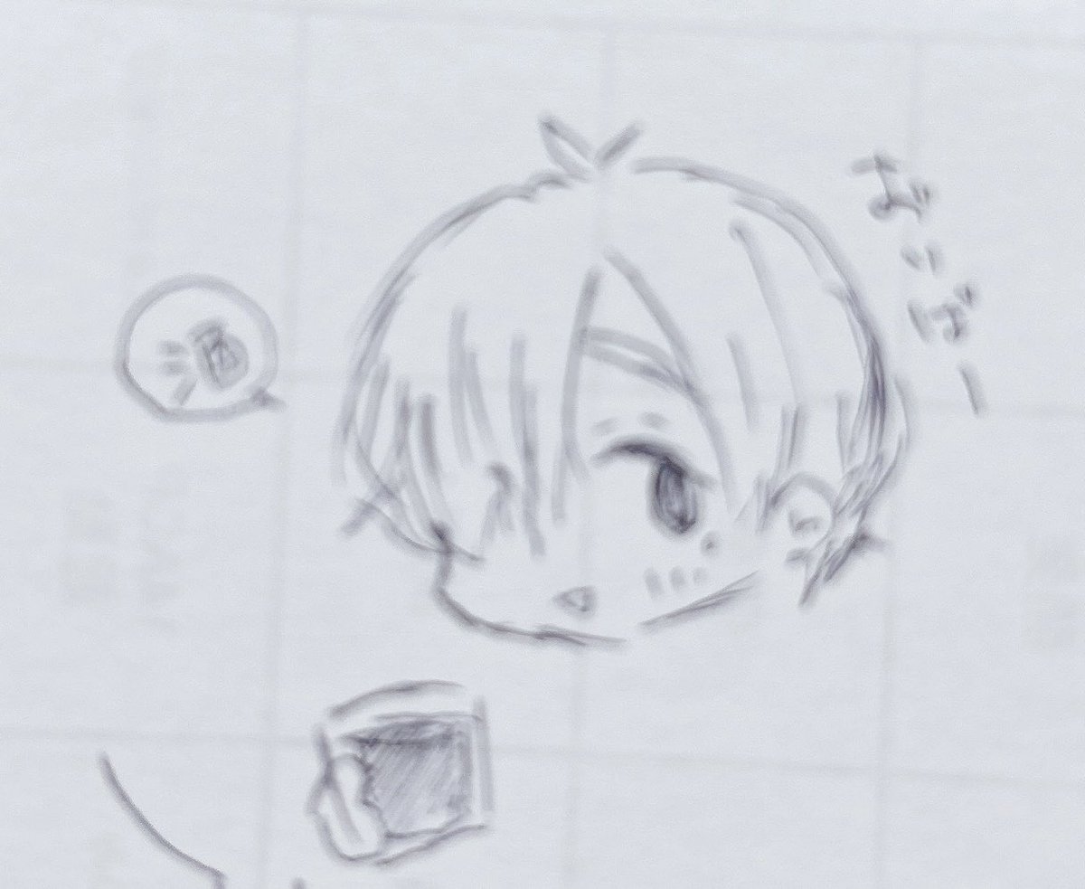 1 9 いつかちゃんと描きたい! まるたそとまっこちゃん!職場のボールペンと紙で描いた。 スマホで写真撮ったからきたね #50人イラフト 22/10/15 15:42