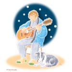 1 7 三寒四温、 雪降る夜も きみと… #イラスト #アコースティック・ギター #犬 23/02/21 00:06