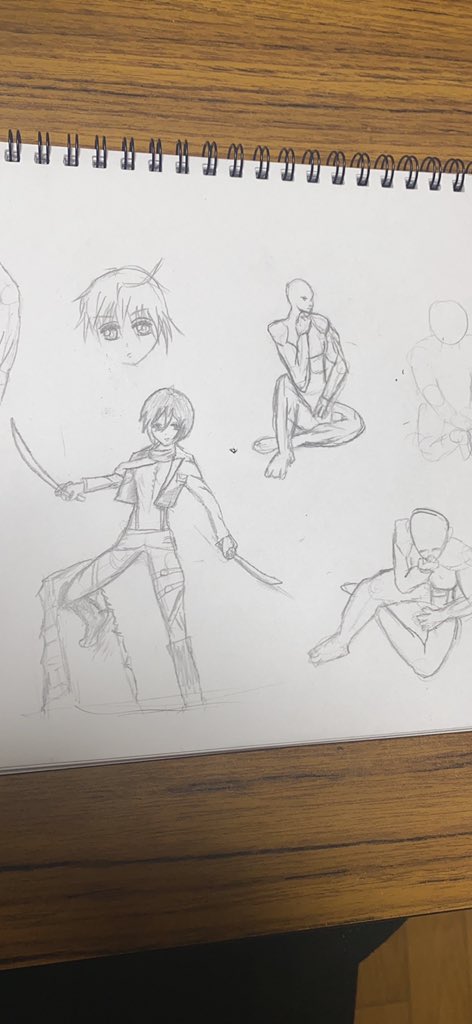 4日目、 今日はひたすら模写して色んな角度から顔を描きました、 めちゃちゃ練習した後 オリジナルキャラクター描いてみました、 男の目って結構難しい🤔 肩から下も描けるようにひたすら練習😎 #イラスト好きと繋がりたい #イラスト練習中 #絵描きさんと繋がりたい #4日目