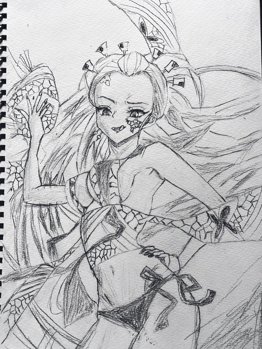 練習11日目 今日は「鬼滅の刃」の堕姫😊 明日applePencilが届くので デジタルチャレンジしてみます📱✍️ #イラスト好きと繋がりたい #絵描きさんと繫がりたい #成長してると思ったらRT #イラスト練習中 #ド素人