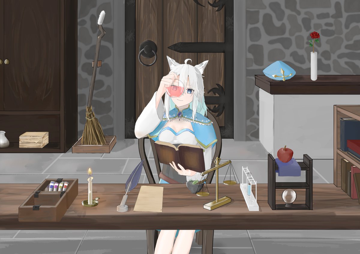 ミネル描いた!!!!!! 背景初めてすぎて分からんかったけど色々勉強になった!!!! #イラスト