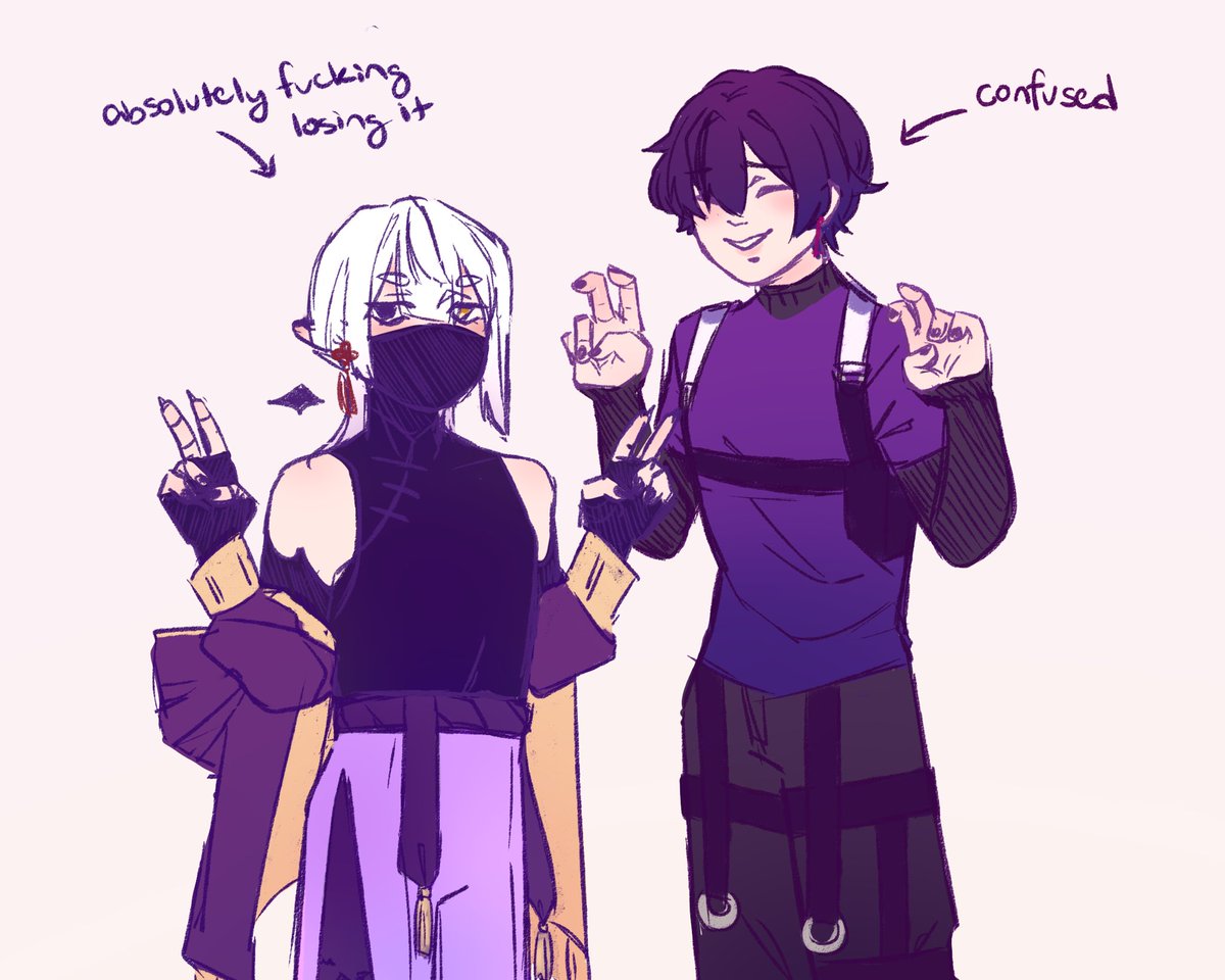 Ignore me frantically getting references of my sona together bc of the guildiesona drawing stream pfft Basically it’s just my normal sona but wearing a variation of Sho’s jacket instead of the 比甲 (the outer wear) #guildiesona #ArtoftheRogue