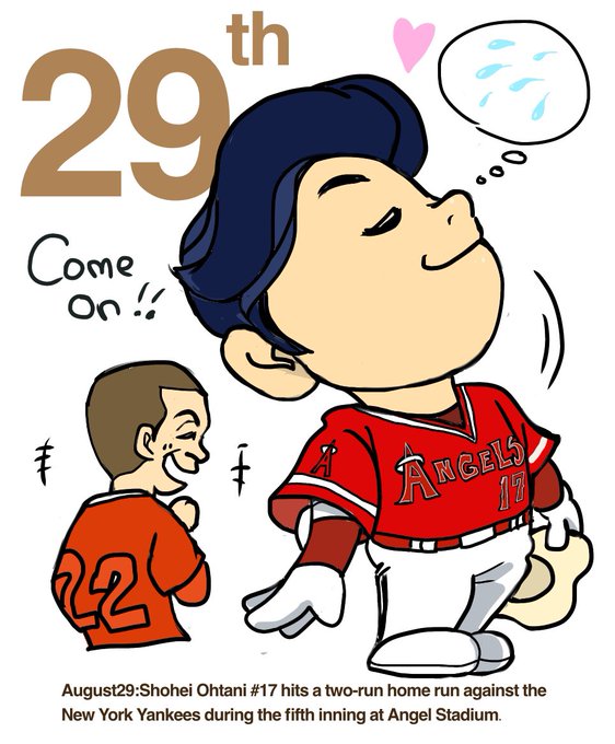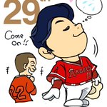おめでとう29号! 早いよー。 エアスプラッシュ、もう自分のモノにしてる🤣 笑顔で嬉しいぞ。 フレッチくん、ありがと🥰 He laughed. I'm so happy. Congratulations! #大谷翔平 #ShoheiOhtani #イラスト