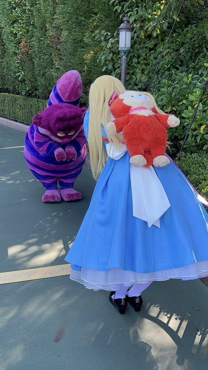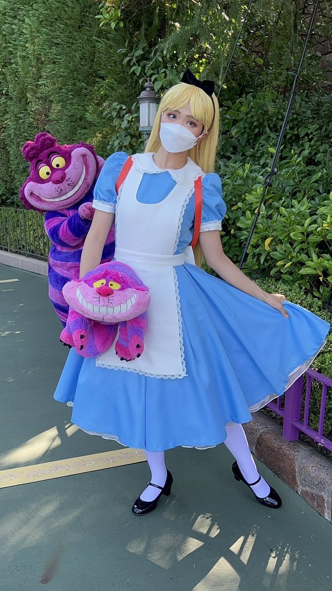 昨日!!ついに!!会えたんです!!! 私の4年のこの思い。 いつもすれ違ってたこの思い。 ようやく最推しに😭😭 もう限界すぎてアリスの仮装してること忘れて「大好きなんですぅ……ア゙ア゙ア゙ア゙ア゙」しか言えなかった…… 実在した……… チェシャ猫愛してるよ…… #Dハロ仮装2022 #Dハロ