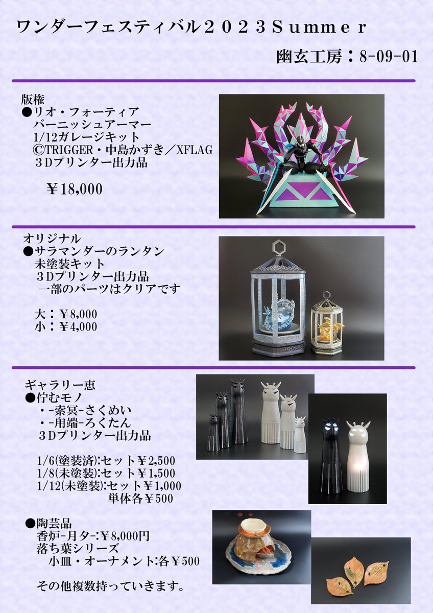 お品書きです~ 卓:8-09-01 よろしくお願いします! #ワンフェス #WF2023S #WF2023Sおしながき