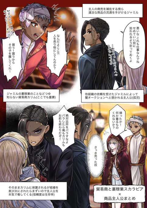 504 6953 先生!私こういうアングラな乙女ゲームがやりたいです!1/2 貿易商と裏稼業スカラ🧞♂️×商品🌸パロ ※🌸♀顔有り・衣装捏造・流血・やはり倫理観はない(一部キャラの損な役回り有り) #twstプラス 23/07/14 21:00