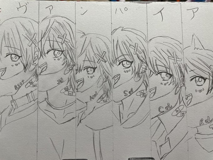 ヴァンパイアの全員ver描いてみました!! るぅとくんとジェルくんの身長差間違えたwww えんぴつラフ画は結構好きだったしますw #すとぷりギャラリー #ヴァンパイア #イラスト好きな人と繋がりたい