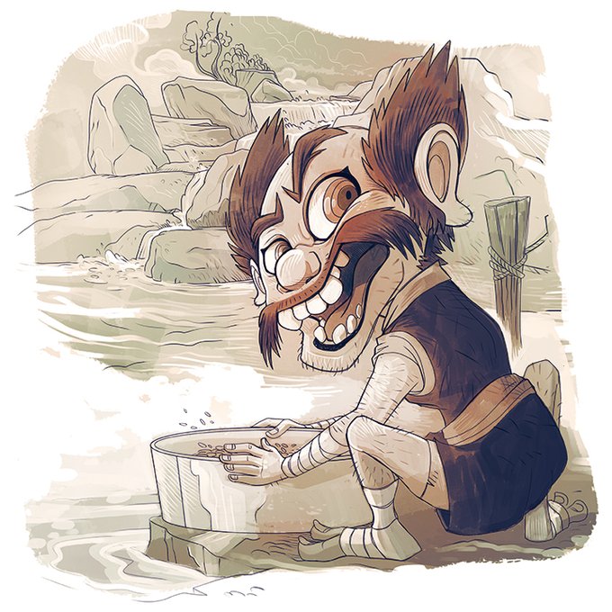 Yokaitober - saison 2 - 7 - Azukitogi Azukitogi #小豆とぎ « lave-soja ») est un #yōkai du #folklore #japonais On le repére près des rivières par un bruit de frottement, shoki, shoki (#ショキショキ), qu'il fait en lavant des haricots azuki (#小豆). #yokaitober #inktober2022