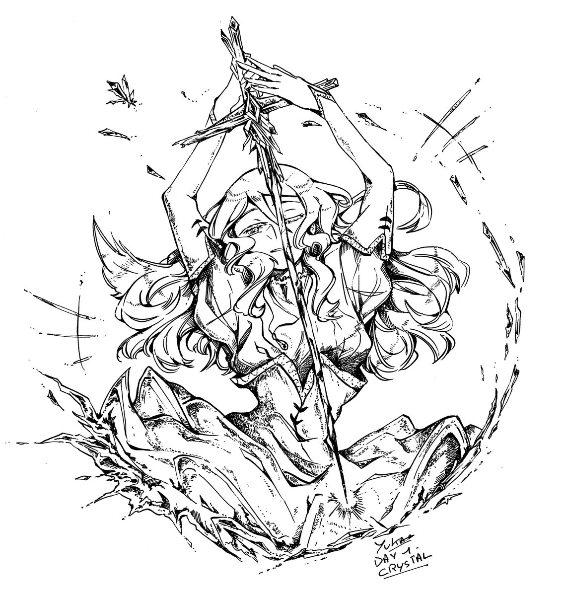 I would like to make the #swordtember (the list is so inspiring) but also the #Inktober and I remembered I can make both in the same time, what a genius/ Here's the first one - crystal 💎✨