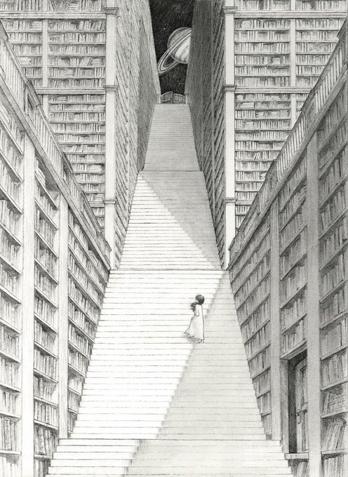 「絶対見つけてね」『絶対見つけるよ』 「誰かに見つけてほしくてこんなに高いところまで来てしまった。ここからでは本は全て同じものに見えてしまう」 『声が聞こえるような気がして、一つ一つ違いを確かめながら昇った。一番上にたどり着いたけれどまだ終わりじゃない』 #ZEROTEN2022愛知作品解説