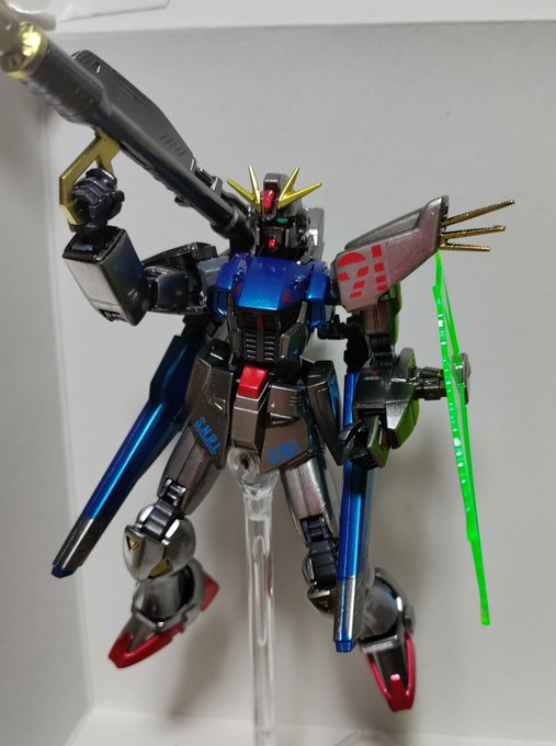 今週のHG F91メタリックカラー塗装です。普段拝見しているTOYBALL FACTORYさんに感化されてギラギラ塗装始めました。光を当てて接写すると汚いですね…笑 デカールはMG用のを使いました。 #ガンプラ #ガンプラの画像貼るとRTされると聞いて #キャンディ塗装