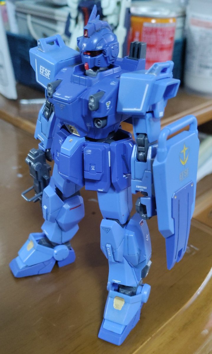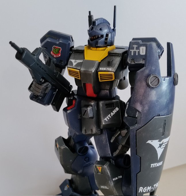 今週のHGその2。ジムQ。塗装ハゲをやってみたけどなかなか難しい。本体色をティターンズブルーとかで塗ってみたけどマジでクオリティ高いな…。 #ジムカスタム #ガンプラ #ガンプラの画像貼るとRTされると聞いて