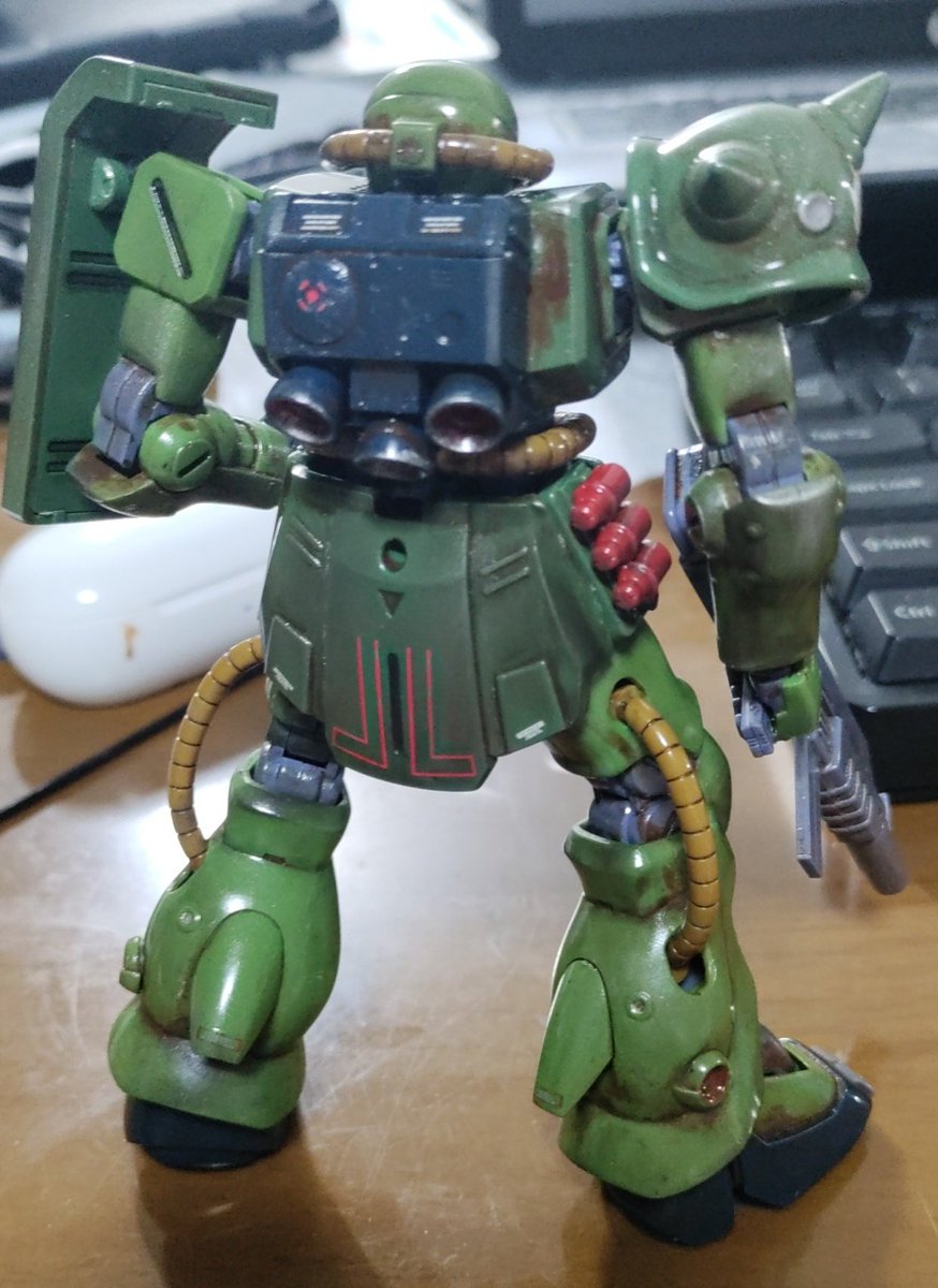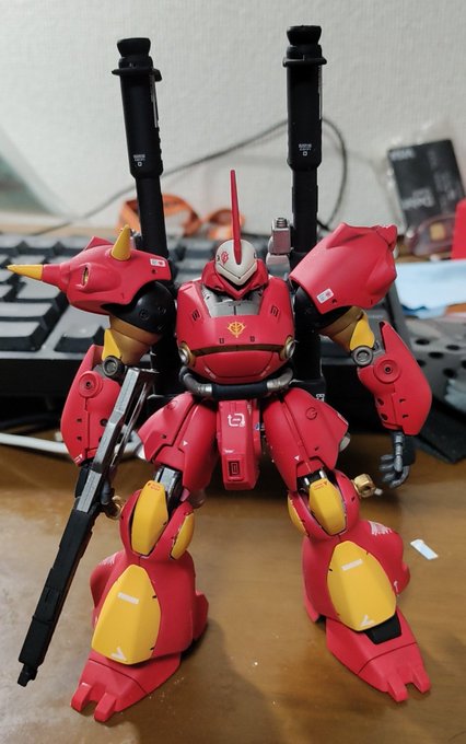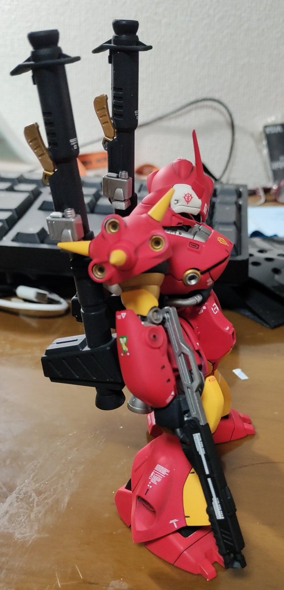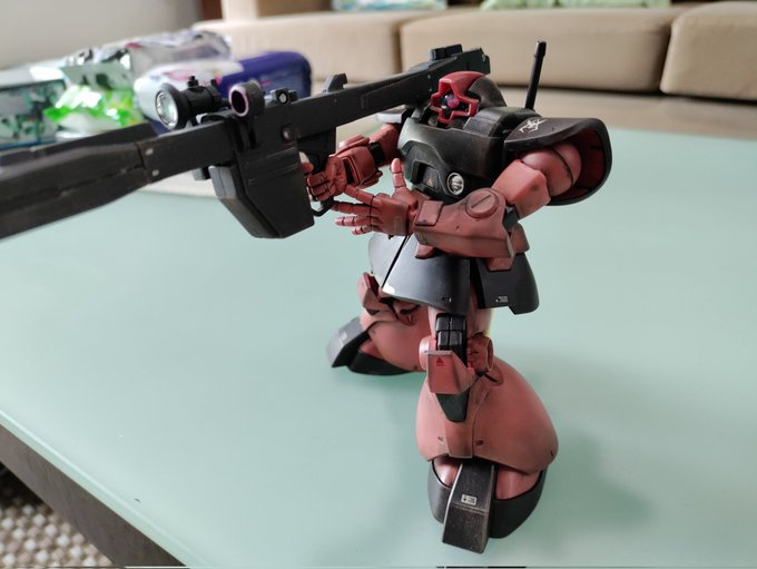 ジョニー・ライデン専用ケンプファーを作成しました。まだ、モノアイとウェザリングはしていませんが今回は結構会心の出来です。部分塗装のマスキングがまだまだ甘いですが。 #ガンプラ #ガンプラはどんな自由な発想で作ってもいいんだ #ガンプラの画像貼るとRTされると聞いて #プラモデル