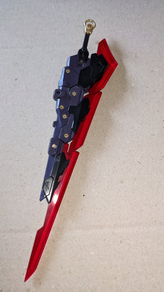 クッソ暑いせいで遅いペースになってしまいましたが武器「天叢雷剣」完成しました ✨✨ めっちゃデカいしギミックが色々あってカッコいい!! 😆 あと少しでスサノヲの制作が終わります〜 #メガミデバイス