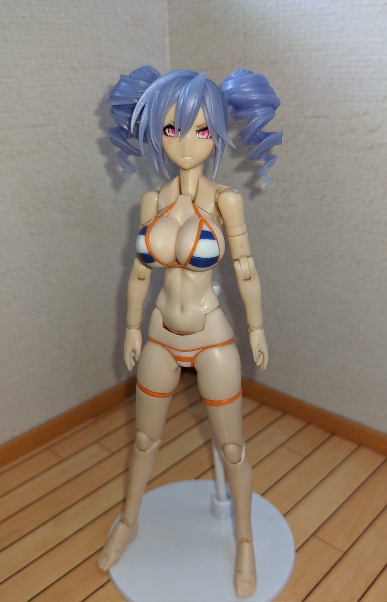 6 22 蒼衣忍者にMuscutoさんのスマートbodyストライプ水着付けてみました〜👙✨ 雰囲気が変わってめっちゃセクシーに!胸もデカい!!😍 水着の色がパーツ分けされてるのは凄いし髪の造形も素晴らしい!!✨✨ #メガミデバイス #Muscuto 23/02/01 11:13
