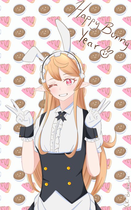 A bit late but, Happy bunny year 2023🐰 the outfit is from Syaro (Gochiusa), but I modified the ears lol also I made a cake pattern cuz is a coffee shop w 🍰☕️ #PomuPaint