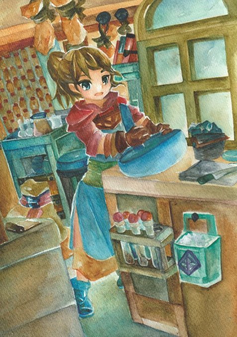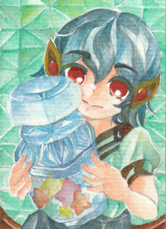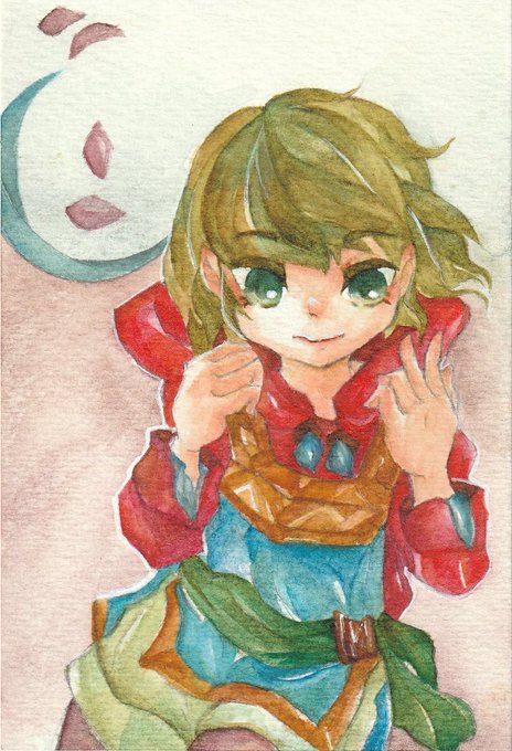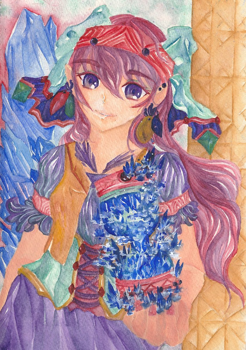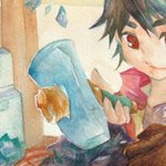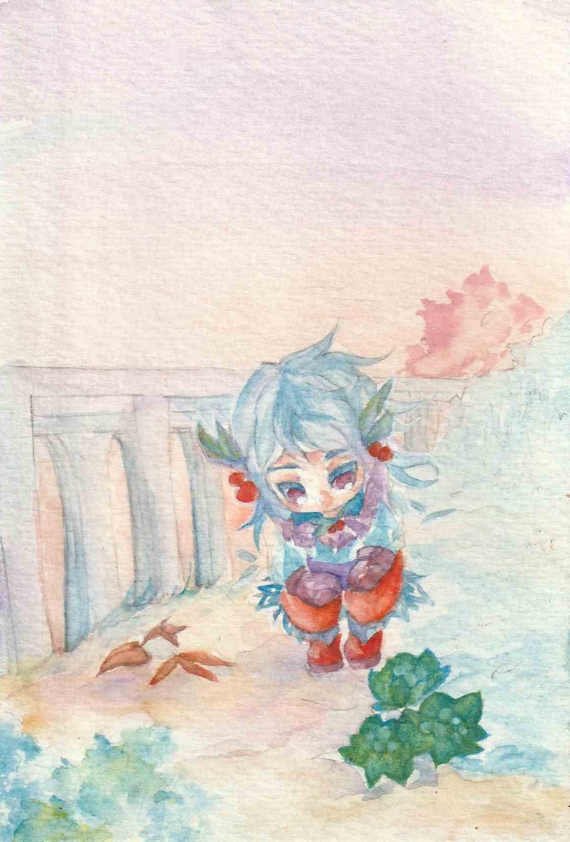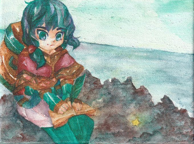 6 13 #水彩発掘隊 素敵な企画に参加させていただきます。 ミジェロ・ホルベイン・ハルモニアをメインに使っています。 幻想と現実の間の風景と少年少女を重ね塗り水彩で描いてます。 羽と鱗、鉱石が好きです。 23/04/23 12:09