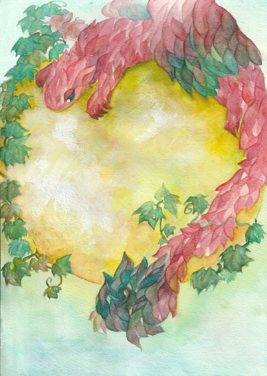 12 51 #うろこのすきま7 作品紹介1 『竜は月を抱いて眠る』 普段あまり使わない黄色メインに植物を司る竜を描きました。 2023年3月製作 使用画材:水彩・ホワイト・胡粉ジェッソ・ヴィフアール水彩紙 23/06/30 20:47