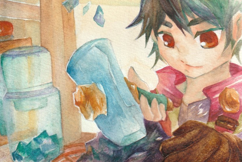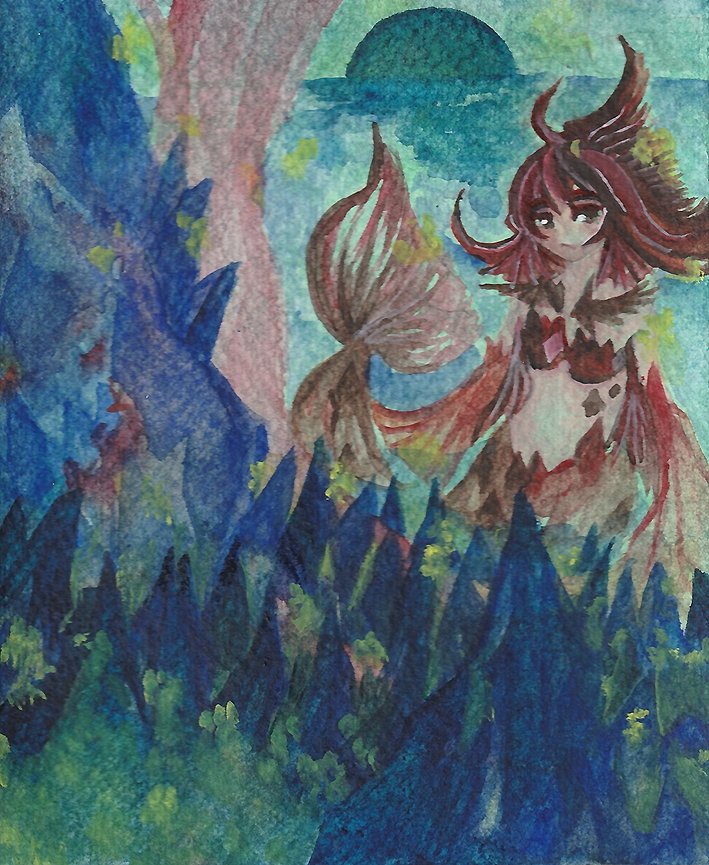 #水彩発掘隊 素敵な企画に参加させていただきます。 ミジェロ・ホルベイン・ハルモニアをメインに使っています。 幻想と現実の間の風景と少年少女を重ね塗り水彩で描いてます。 羽と鱗、鉱石が好きです。