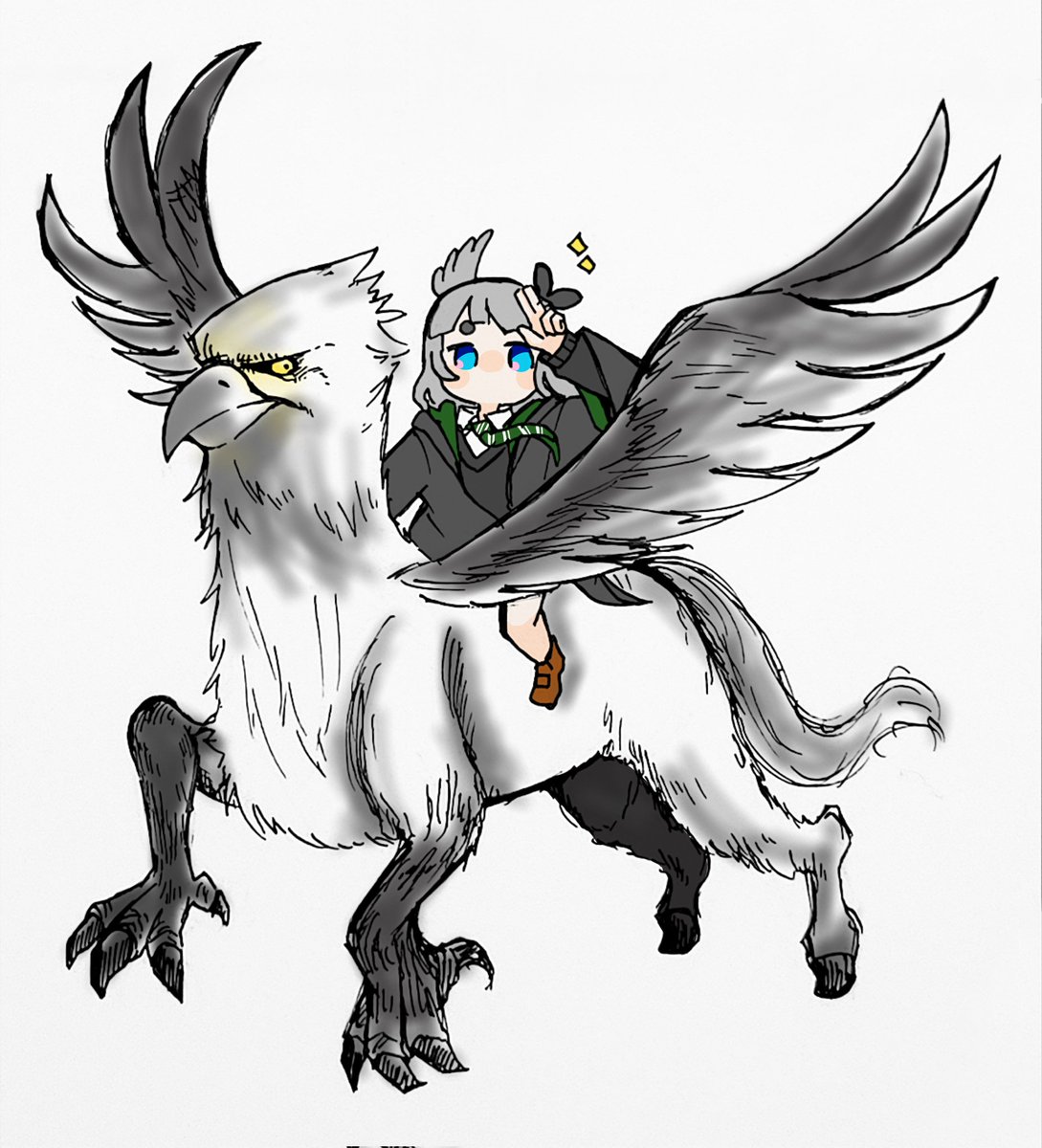 るかこさんが言っていたのを元に描いてみた、ハリポタ風の3人🧙♂️ #絵ーじぇんと #セイッ画 #ゆげいじゅつ