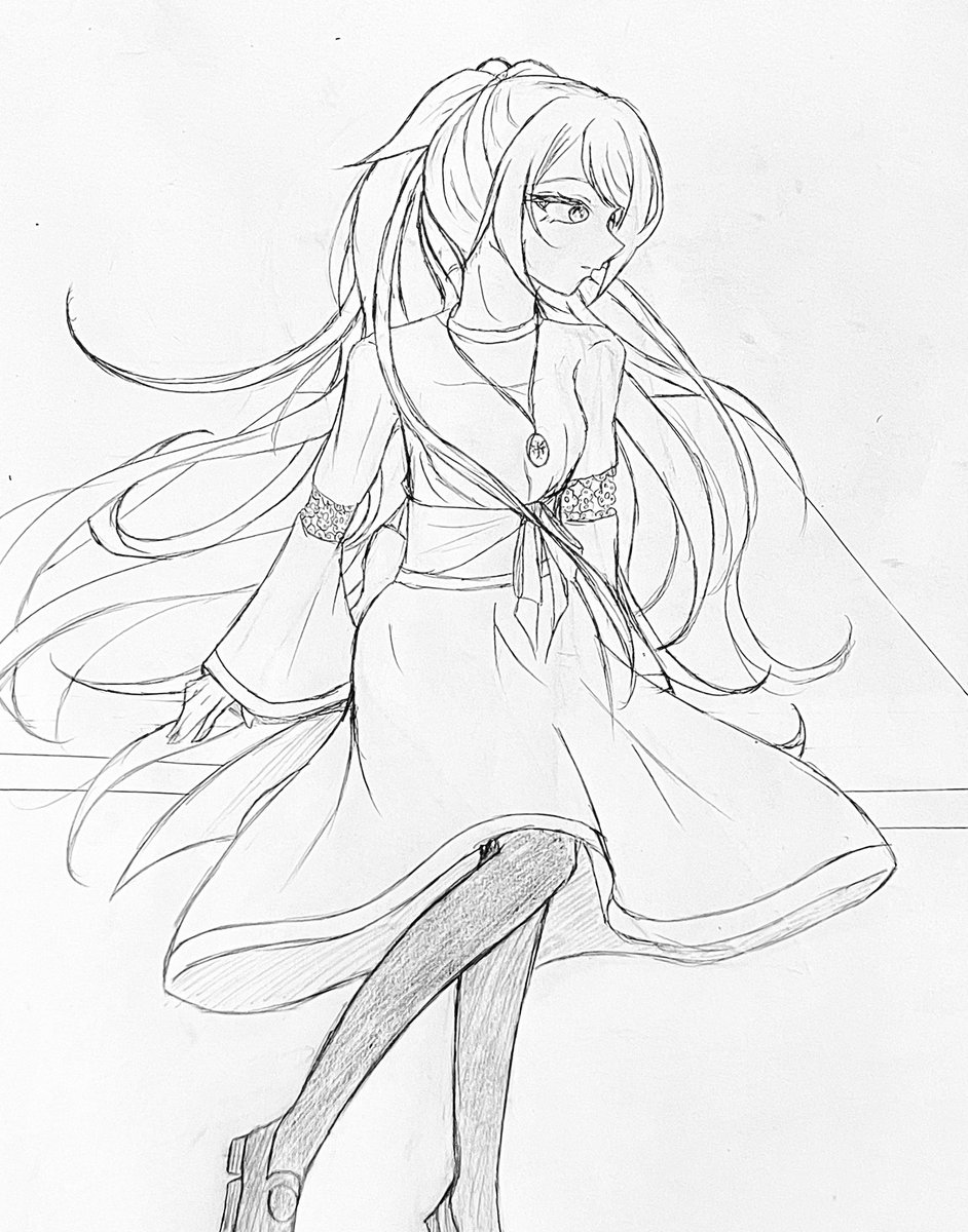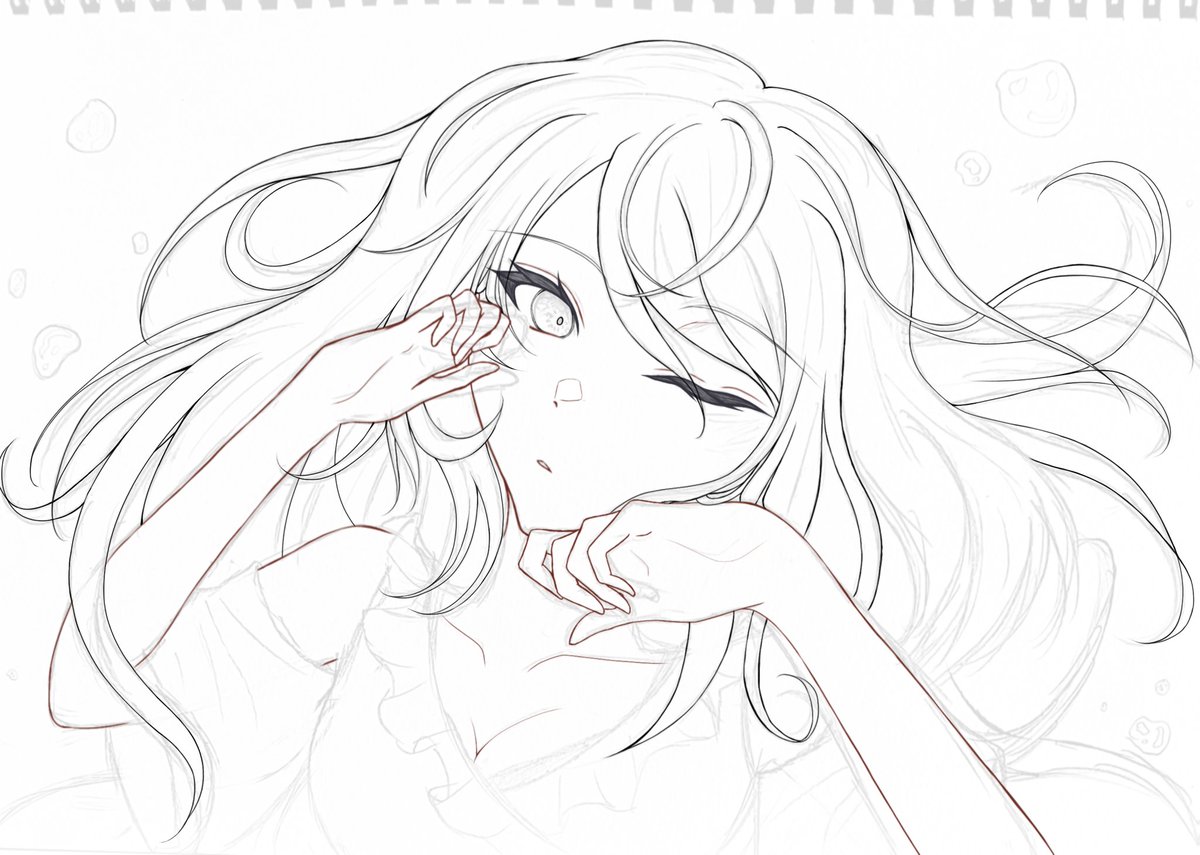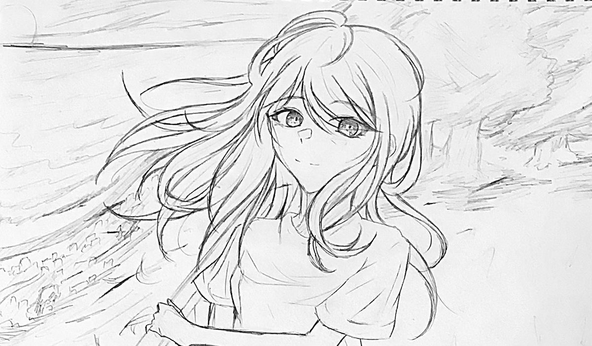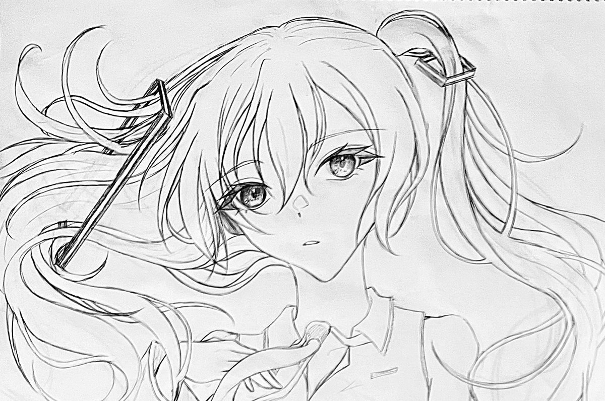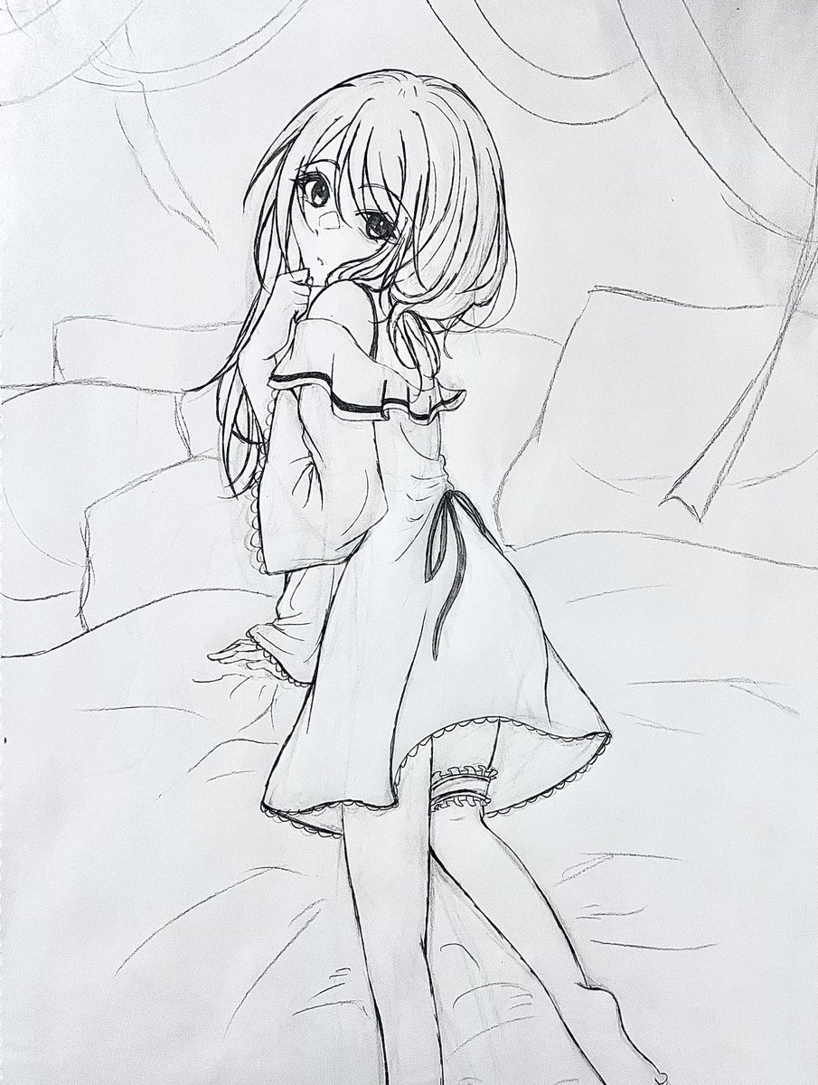 前のアナログで描いてた進捗です 灰色で下塗りするといいって聞いたので試してます|˙꒳˙)) 色はお楽しみです(*´ᵕ`*) #イラスト