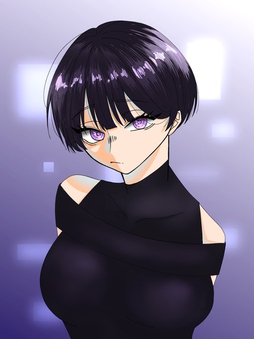 髪の塗り方変えました( ¨̮ ) #デジタルイラスト #女の子 #ベリーショート #むらさき #絵描きさんと繋がりたい #絵柄が好みっていう人にフォローされたい #背景の描き方わかんない #服塗れない