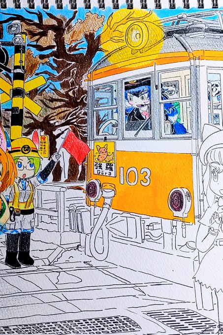 0 2 今日はここまで!! 次に、ダンロップのアーチに腰掛ける鳥のフレンズやスカイフィッシュ、観客席で振られている旗とかを描く! 🎙『んん!?7号車、カラカル選手が空を飛んでいます!!!?!!』 #カラ騒ぎ #カラカル展 23/03/26 22:09