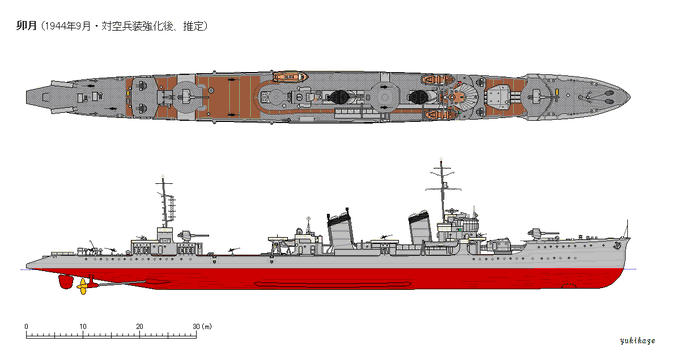 |ヮ')<睦月型の改装案(「三日月」として製作)かなぁ 形にするためネット上とかの資料漁ったな (・∀・) (これ自体は架空艦だけど一部を除いて実艦に近づけようとした) #個人的に今年1番頑張ったプラモデル見せてください
