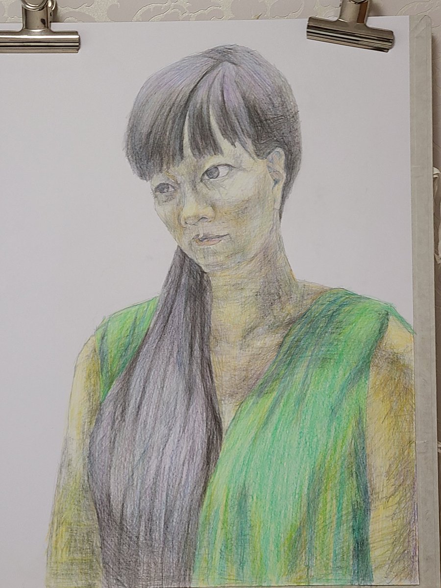 本画制作のための人物写生 木炭紙サイズ ケント紙 色鉛筆 2022年 この写生を基に、本画を描こうと考えている。どのような絵にしようか。 #人物画 #色鉛筆