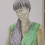 0 4 本画制作のための人物写生 木炭紙サイズ ケント紙 色鉛筆 2022年 この写生を基に、本画を描こうと考えている。どのような絵にしようか。 #人物画 #色鉛筆 22/01/13 09:47